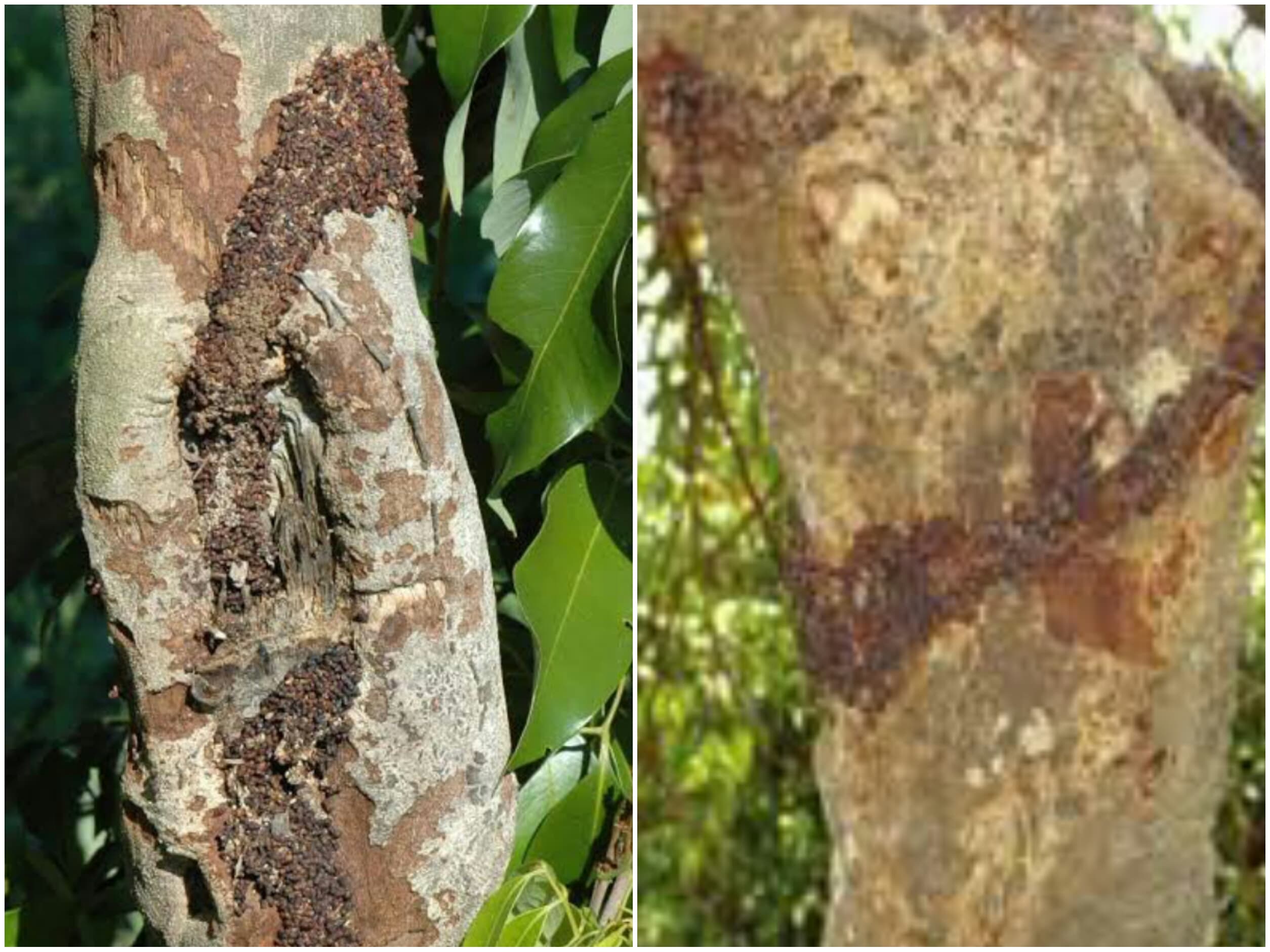 These insects make tunnels or holes in the main trunk and thick branches of the tree and hollow them from inside.