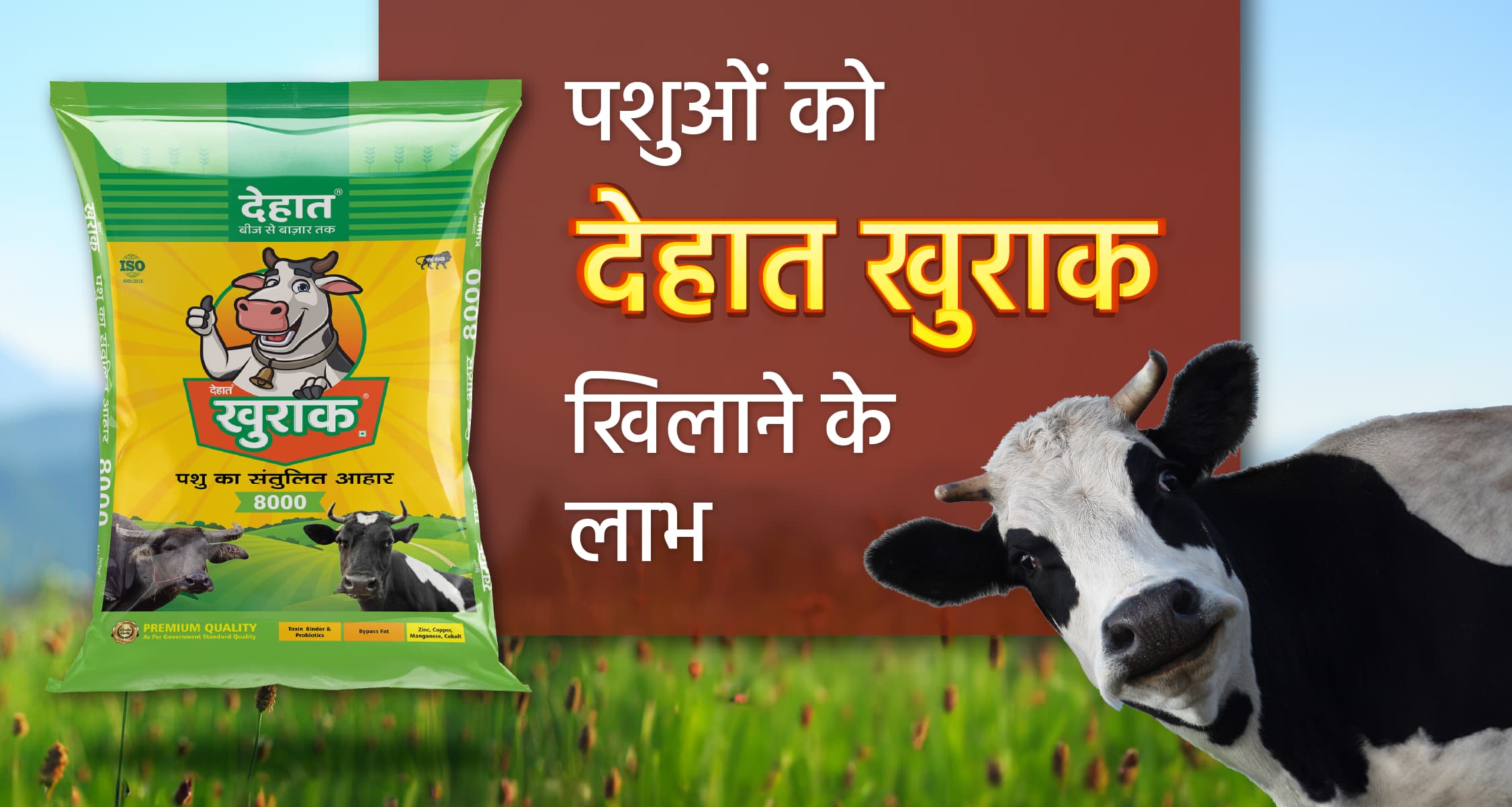 पशुओं के स्वास्थ्य को बेहतर बनाए रखने के लिए उन्हें संतुलित आहार खिलाना बहुत जरूरी है। संतुलित आहार नहीं मिलने से पशुओं की प्रजनन क्षमता के साथ दूध उत्पादन की क्षमता भी कम होने लगती है। कई बार उनके दूध में वसा की मात्रा में भी कमी होने लगती है। इन समस्याओं से बचने के लिए दुधारू पशुओं के आहार में सूखे चारे, हरे चारे, आदि के साथ 'देहात खुराक' भी शामिल करें। इसके कई फायदे हैं। आइए इस पोस्ट के माध्यम से हम जानते हैं पशुओं को देहात खुराक खिलाने के फायदे एवं इसकी उचित मात्रा।