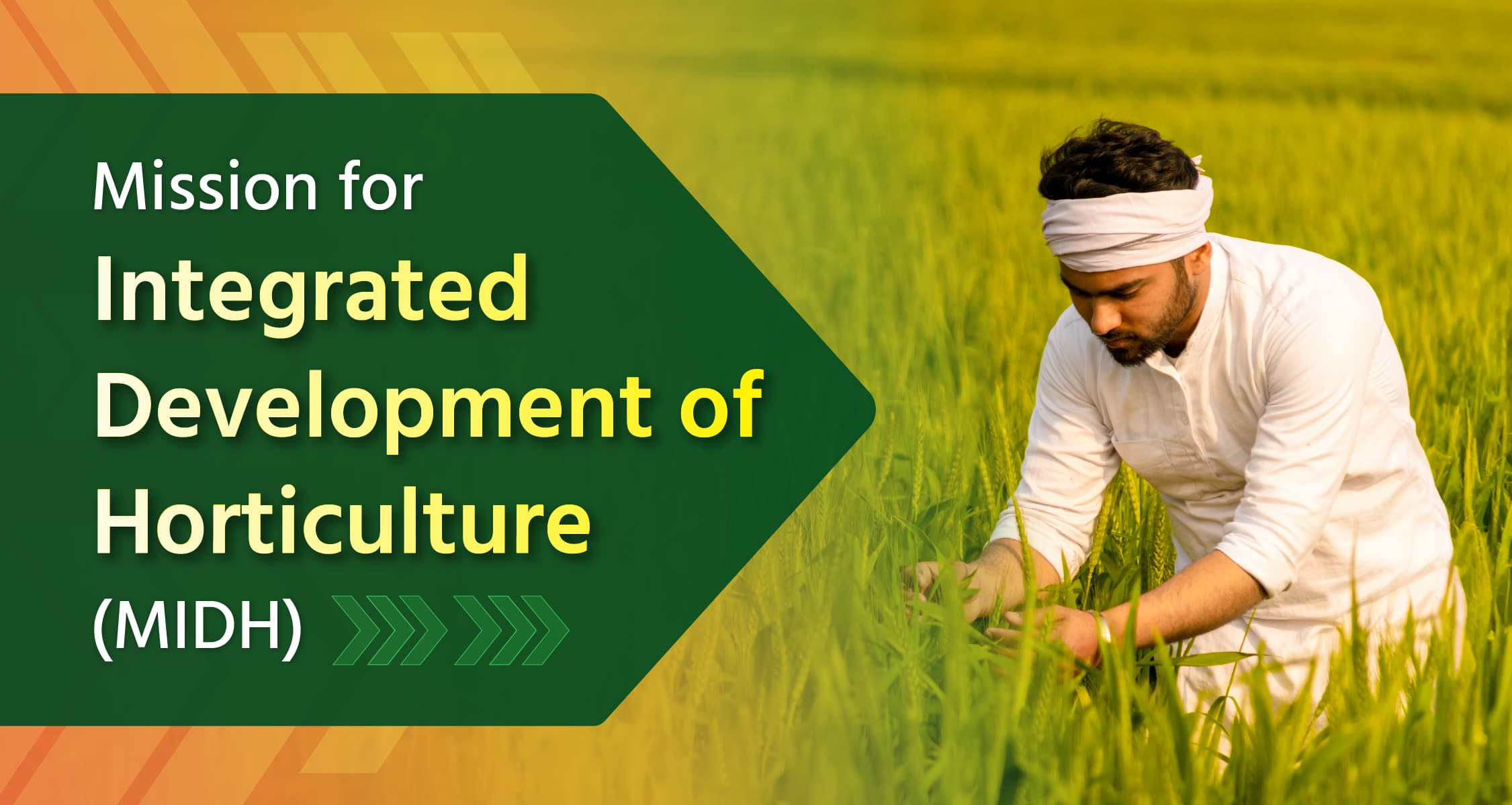 The Mission for Integrated Development of Horticulture (MIDH) is a centrally sponsored scheme launched by the Government of India in 2014-15. The aim of this scheme is to promote the overall development of the horticulture sector, including fruits, vegetables, spices, flowers, aromatic plants, coconut, cashew, cocoa, and bamboo. This scheme provides assistance for various activities such as the creation of infrastructure facilities, the promotion of extension services, post-harvest management, marketing and processing of horticultural products, and research and development. The primary objective of this scheme is to increase horticultural production, improve nutritional security, and provide income support to farming families. This scheme is implemented by the Ministry for Agriculture and Farmers' Welfare, Government of India.