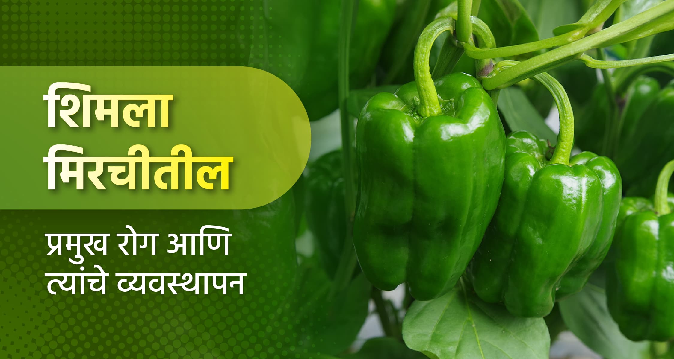 आपल्या देशात पिकवल्या जाणाऱ्या विविध भाज्यांमध्ये शिमला मिरची या पिकाला प्रमुख स्थान आहे. भारतात मुख्यत: हिमाचल प्रदेश, उत्तर प्रदेश, पंजाब, हरियाणा, कर्नाटक, तमिळनाडू, गुजरात, बिहार आणि महाराष्ट्र या राज्यांत शिमला मिरचीची लागवड केली जाते. शिमला मिरचीची लागवड साधारणतः ऑगस्ट किंवा सप्टेंबर महिन्यामध्ये केली जाते कारण या महिन्यातील हवामान या पिकासाठी पोषक असते. पण शिमला मिरचीची उत्पादकता पातळी खूपच कमी आहे. त्याच्या उत्पादनात घट होण्याचे मुख्य कारण म्हणजे पिकांवर होणारा कीड आणि रोगांचा प्रादुर्भाव. या पिकावर होणाऱ्या रोगांच्या प्रादुर्भावामुळे शेतकऱ्यांचे भरपूर नुकसान होते. हेच नुकसान टाळता यावे म्हणूनच आजच्या या लेखात आपण शिमला मिरची पिकातील प्रमुख रोग आणि त्यांच्या व्यवस्थापनाविषयी जाणून घेणार आहोत.