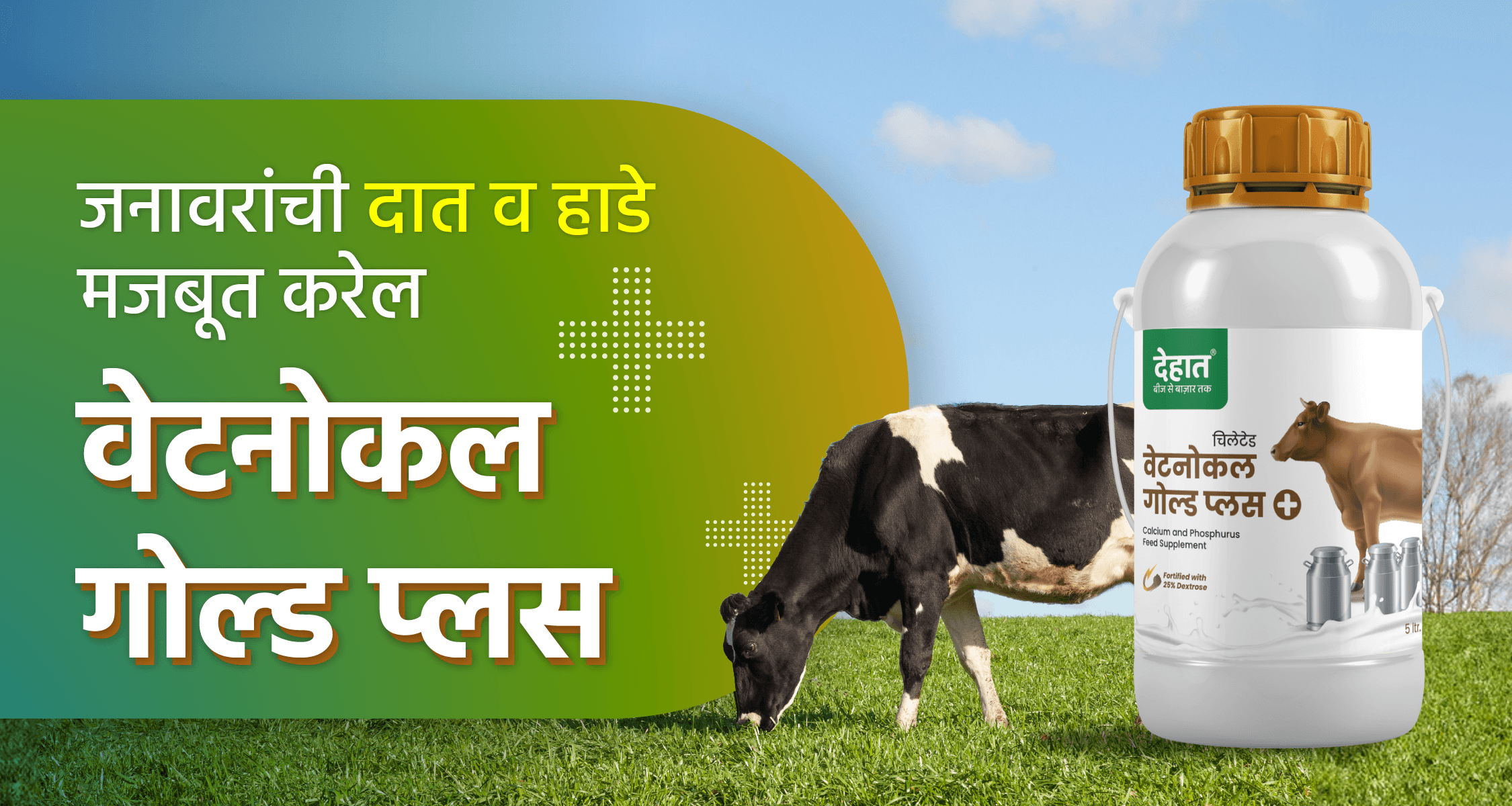देहात व्हेटनोकल गोल्ड प्लसचा वापर जनावरांची दात व हाडे करेल मजबूत