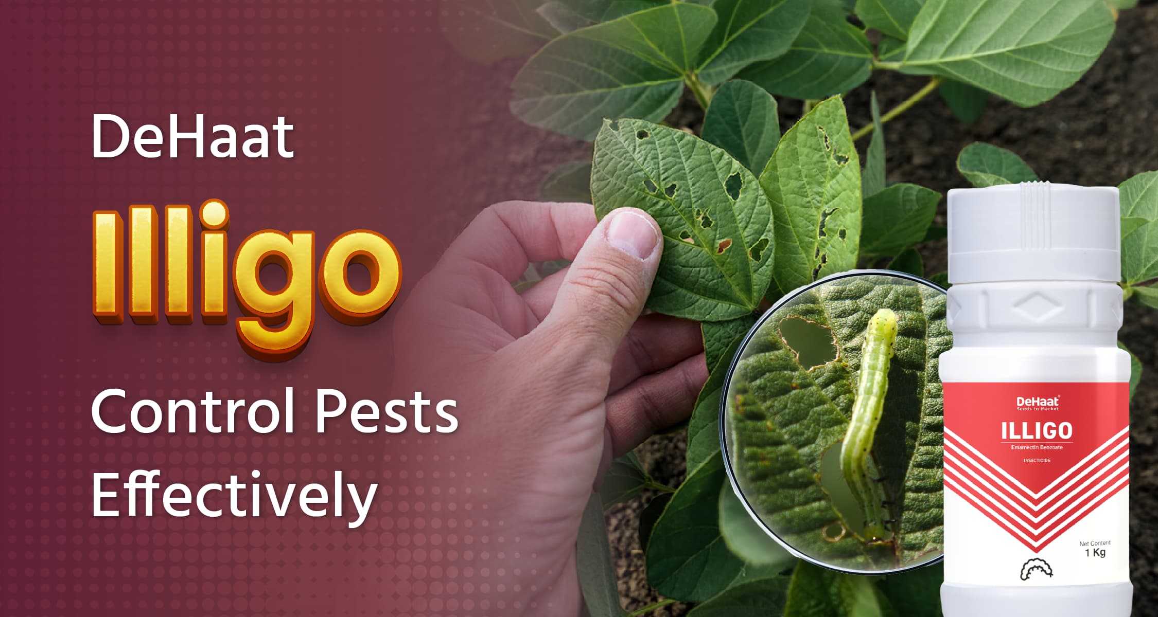DeHaat Illigo (Emamectin Benzoate 5% SG) is an effective insecticide that helps manage caterpillars and other pests on various crops.