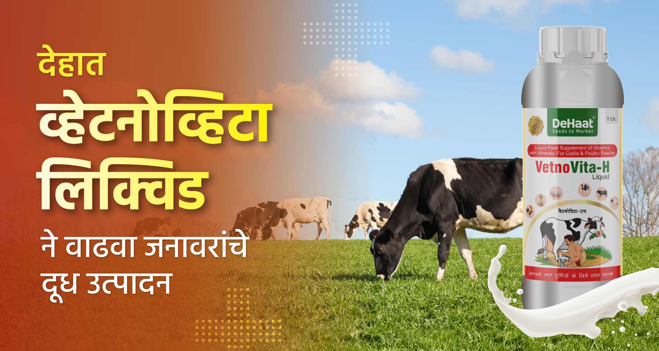देहात 'व्हेटनोव्हिटा - एच लिक्विड' ने वाढवा जनावरांचे दूध उत्पादन (Increase the milk production of animals with DeHaat 'Vetnovita - H Liquid')