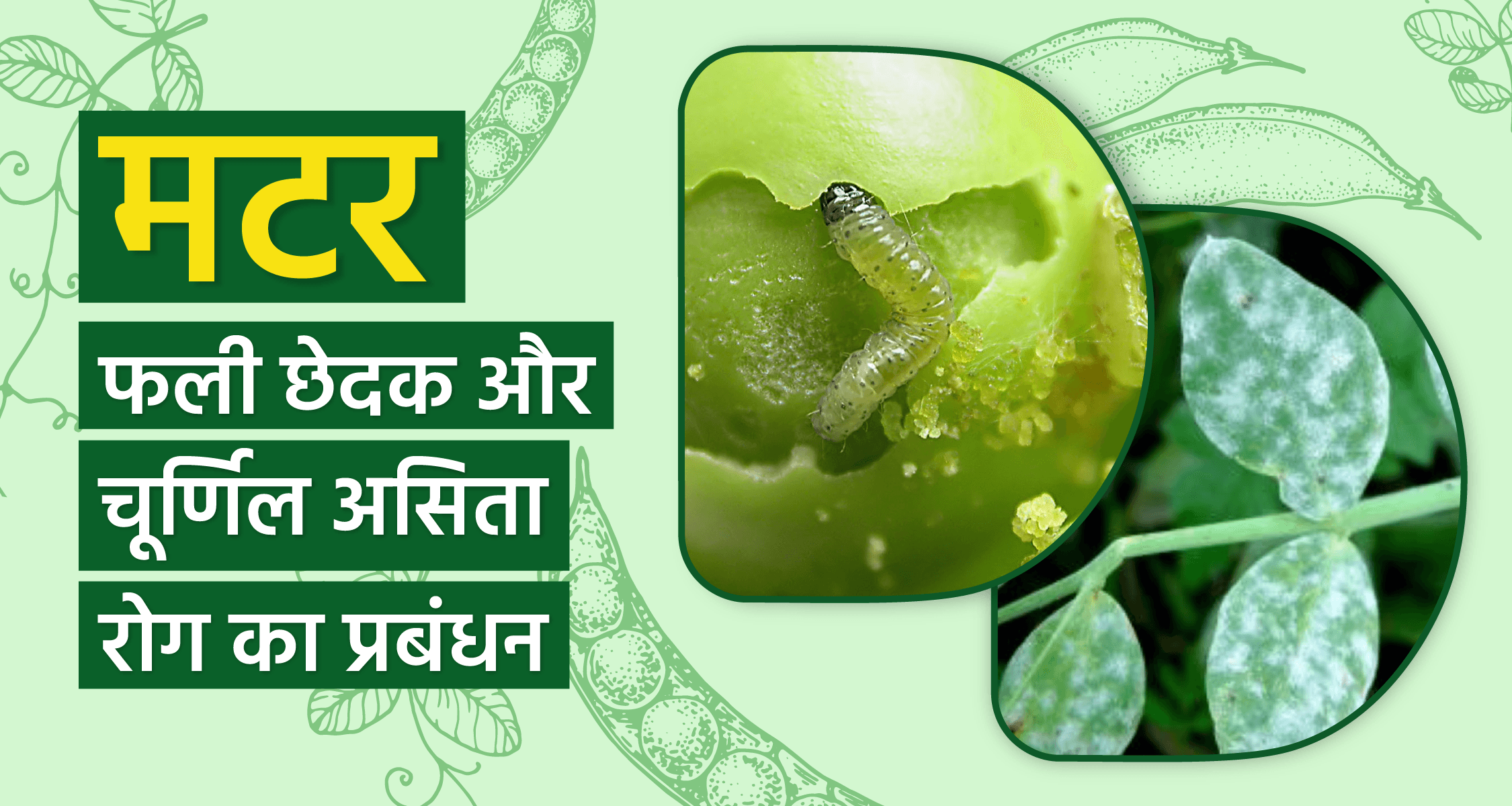 मटर की फसल में फली छेदक कीट का प्रकोप सबसे अधिक होता है। इसके अलावा चूर्णिल आसिता रोग यानी पाउडरी मिल्ड्यू के कारण भी मटर की फसल का बहुत नुकसान होता है। फली छेदक कीट एवं चूर्णिल आसिता रोग के लक्षण एवं नियंत्रण की जानकारी यहां से प्राप्त करें।